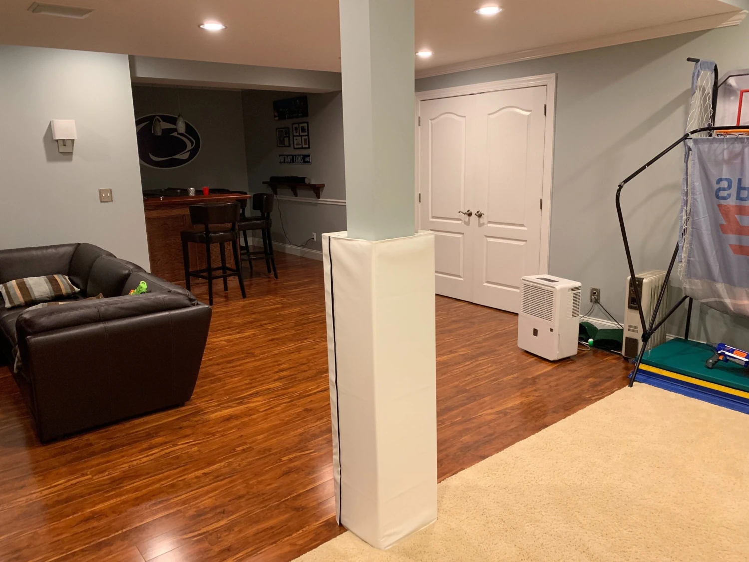Four sided column pads provide excellent protection around square 5″ x 5″ x 5″ x 5″ columns