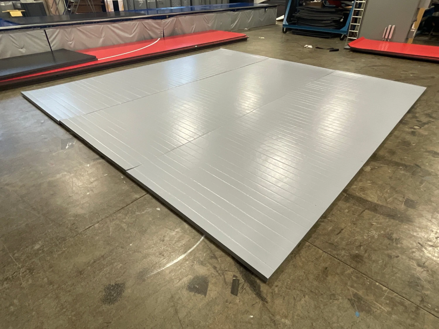 Clear Mat tape is provided to adhere the separate wrestling mat pieces.