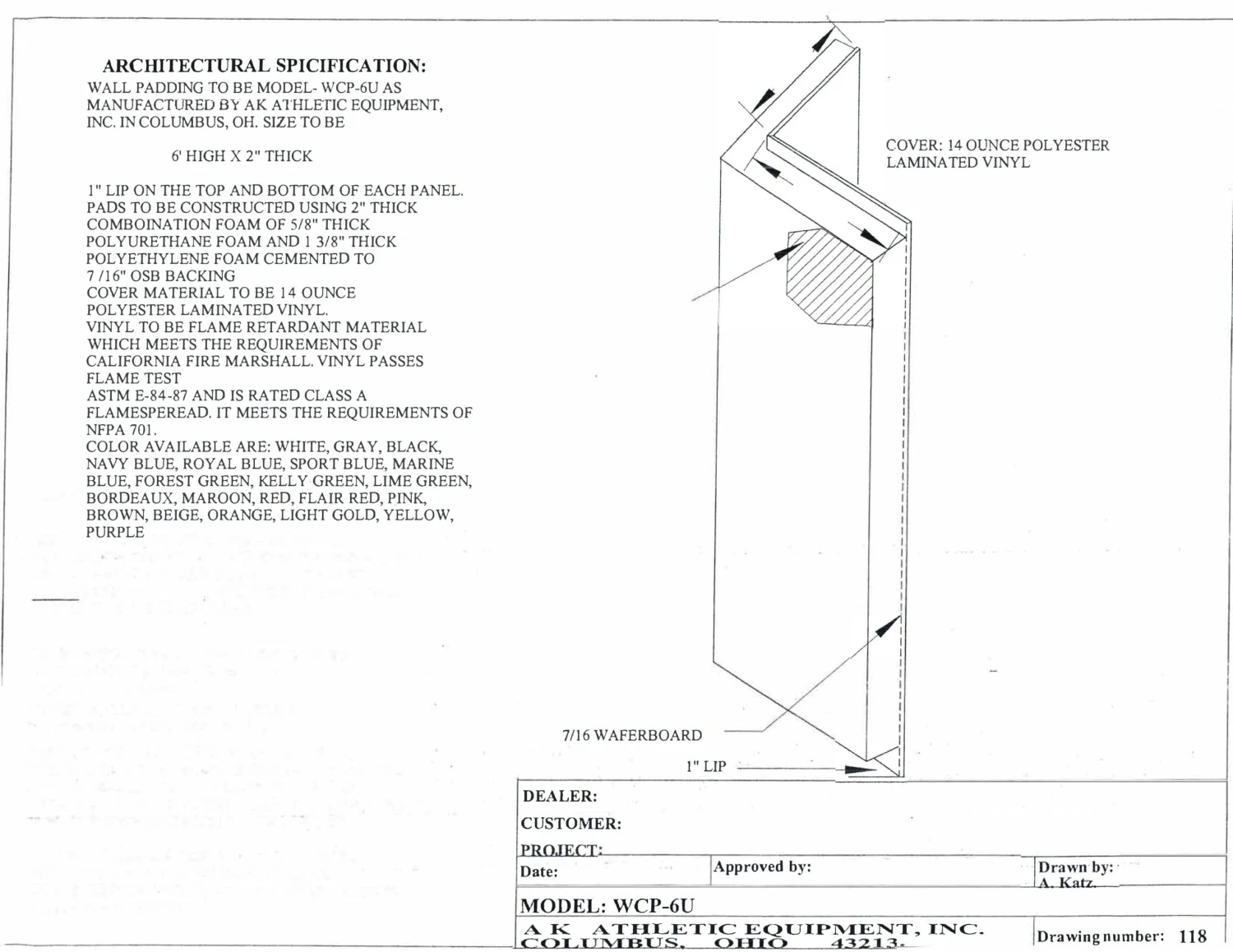 Each wood backed corner pad safely covers 6″ on either side of a corner and is 6′ tall. Corner pads are made with 2″ of shock absorbent polyurethane foam. Item is made with a 1″ nailing lip on the top and bottom for attachment to wall.