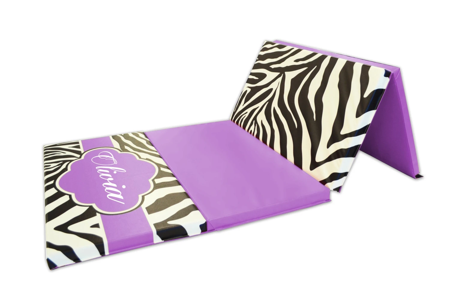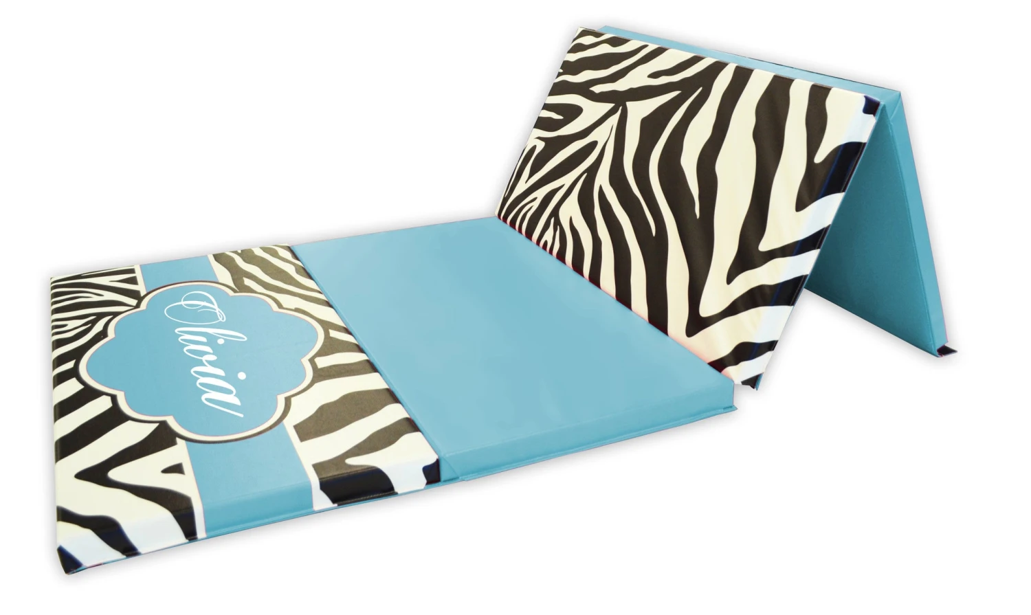 This high quality folding gym mat is 4′ wide and 8′ long with four panels that folds accordion style for easy storage and transportation. Zebra Print folding mat includes fastening strips on two 4′ sides to allow for attachment to other mats. These mats are made from heavy duty 14 oz vinyl that is, lead-free,